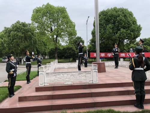 活动进入第二项,升国旗,奏唱国歌,全体师生行注目礼。