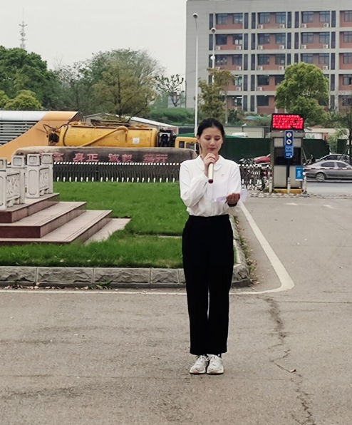 活动第三项,国旗下的讲话。由18级汉语国际教育1班赵静雅给大家带来以《珍惜和平时代,不负青春热爱》为题的演讲。赵静雅同学以清明节爷爷缅怀烈士切题,讲述陈红军、陈祥榕、肖思远等烈士的英勇故事,这百年的党、百年的路、光辉的历史,正是由这些烈士们的鲜血书写的。同时,她分享了自己的大学经历,大一大二为学生工作尽心尽责、积极参加社团活动、参加校外英语训练营。大三上学期则积极参加各种比赛,抓住机会充实自己。她,一直在路上,她激励大家:“趁我们还有强壮的体魄,矫健的身姿,有国家的扶持、有社会的希望、更有学院的支持、父母的养育,还有遮掩的美好的和平时代,在最美好的年华,我们都应该不负青春热爱”。