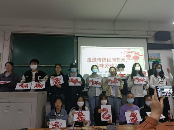 “本次活动意义重大,让我既充分认识了剪纸这门工艺,又学习到了剪纸文化和剪纸艺术,”2021级中国语言文学类2班薛冉展示着她的作品说,“我深刻意识到,我们学生应该弘扬民族传统工艺,让剪纸文化在校园里传播。”