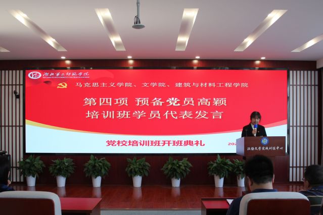 培训班学员代表、建材学院预备党员高颖发言