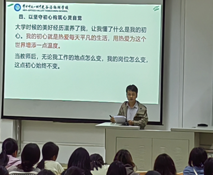 石伟华讲到,大学时候的美好经历滋养了他,让他懂得了什么是他的初心。他的初心就是热爱每天平凡的生活,用热爱为这个世界增添一点温度。当教师后,无论他工作的地点怎么变,这份初心不变。