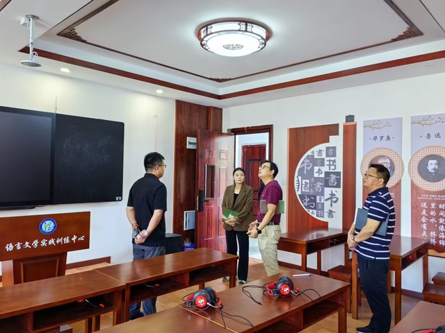 会后,李汉桥副院长带领来宾参观了文学剧场观摩实训室、汉字学习训练室、中华经典诵读实训室等实践教学场所。
