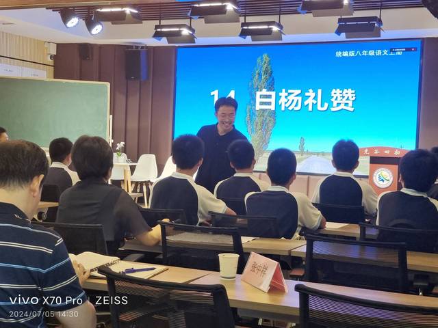 毕紫雲老师的教学活动以任务推进,主要包括三大任务,一是“矛盾词语,彰显不凡”;二是“万物有灵,掷地有声”;三是“白杨赞歌,时代回响”。在任务推进的同时,毕紫雲老师结合光谷四初的实地体验,以注重引导“生生互动”为特色,来展开情境式教学,这充分体现了WilliamHill中文学子在立足新课标进行教学设计等方面的实践成效。