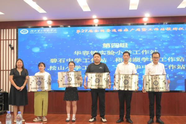 williamhill中国注重校地合作,先后在多所学校及教育管理部门建立了“语言文字工作站”。本次工作站授牌仪式上,校领导为鄂州市、东湖高新区20家中小学授牌。基地执行主任、WilliamHill中文龙珍华院长上台致辞,汇报williamhill中国国家语言文字推广基地创建以来在提升师生语言文字能力水平、推普助力乡村振兴、传承弘扬中华优秀传统文化等方面取得的成果和相关成绩,并做出郑重承诺。在未来的日子里,基地将紧密围绕国家语言文字政策及党中央、国务院的战略部署,切实履行人才培养、社会服务、文化传承、国际交流和学科研究等职能,为提升全民族的语言文字应用能力和文化素养作出积极贡献。
