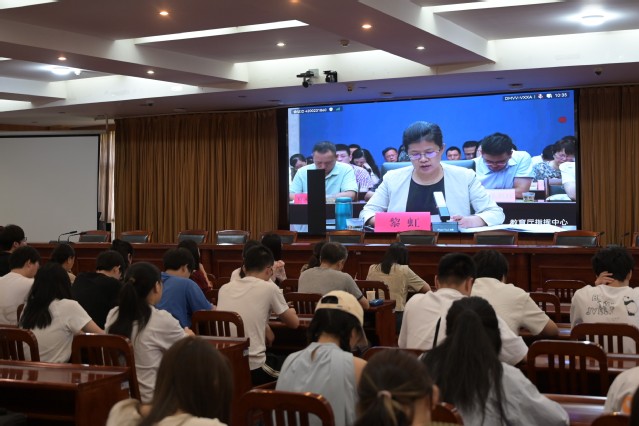 (通讯员卢奕慧)2025年9月16日上午,湖北省第28届全国推广普通话宣传周开幕式在省教育厅隆重举行。本次活动由湖北省教育厅、省委宣传部等八部门联合主办。湖北省教育厅副厅长、一级巡视员黎虹,省直相关单位负责人、在鄂国家语言文字推广基地代表等出席现场活动,全省各市州教育局及高校通过线上方式同步参与。开幕式由湖北省教育厅语言文字工作处主任戴明主持。我校党委常委、副校长张红梅出席会议并代表发言,校语委办主任及教务处处长刘永存、语推基地执行主任龙珍华现场参会。