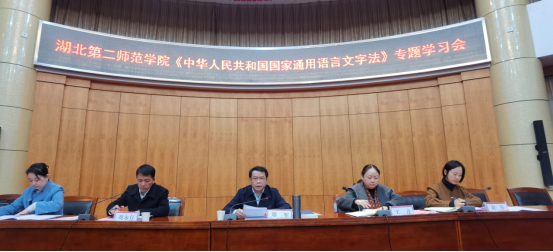 (通讯员龚睿)12月30日下午,学校语言文字工作委员会在行政楼一号会议室组织召开《国家通用语言文字法》专题学习会,校长郑军出席并讲话,教务处处长刘永存主持会议。